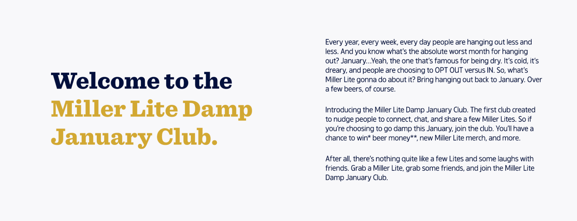 All of it meant to be enjoyed with friends, because that's what the Miller Lite Damp January Club is all about. So stop reading, hit the button below, and let's make this month a little less dry.
